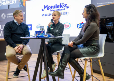 Genuss, Markenverantwortung und moderne Arbeitswelten standen im Fokus bei Mondelēz International. Das Unternehmen verwandelte den Stand in eine Snacking-Erlebniswelt. Besucher konnten sich mit der Milka-Kuh fotografieren lassen, Oreos am Schokobrunnen dekorieren und prämierte Cheesecake-Kreationen probieren. Ergänzt wurde das Erlebnis durch Einblicke in Produktion, Unternehmenskultur und nachhaltige Rohstoffbeschaffung. Als besonderes Highlight überreichte das Unternehmen 100 exklusive Milka-Jubiläumstafeln an Messechef Lars Jäger – zwei Traditionsmarken feiern gemeinsam.
